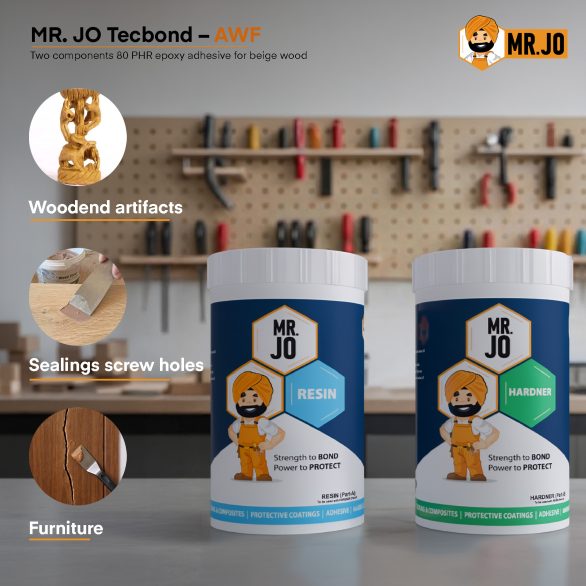 Mr. JO Tecbond AWF is a high-quality, solvent-free, two-components epoxy adhesive. It is great for wood furniture and fixtures. It has strong and durable bonds. This beige wood glue gives excellent adhesion. Additionally, it offers long-lasting stability. The 100:80 PBW mixing ratio makes it easy to use. It’s perfect for various woodworking projects. Also, it blends well with wood surfaces. Whether you’re a professional or a DIY enthusiast, it will improve your projects with reliable, high-strength bonding.