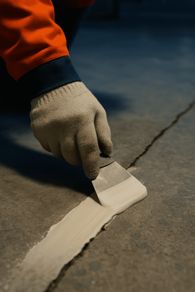 - Prep the area – Clean the gap and surface with a brush and remove any oil, dust, or moisture. Use IPA or acetone to degrease.